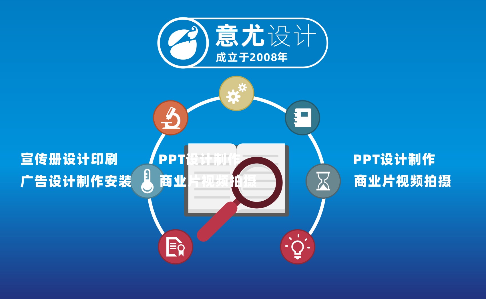 蘇州意尤文化傳播有限公司是一家有著多年廣告設計經驗的蘇州知名廣告企業(yè) 主要業(yè)務有蘇州PPT設計、蘇州產品PPT設計、蘇州企業(yè)PPT設計、蘇州會議PPT設計、蘇州項目PPT設計、企業(yè)VI設計、設計印刷宣傳冊/樣本/單頁/名片等 自2007年成立以來,蘇州意尤廣告公司與蘇州及蘇州各市的幾百家中外企業(yè)進行了廣告設計合作,經過多年發(fā)展公司已形成了以企業(yè)PPT設計、企業(yè)VI設計,廣告設計,廣告印刷,樣本設計,宣傳冊設計,名片印刷,菜譜制作,單頁,宣傳單等一批特長業(yè)務,相信在各位新老客戶的關心下,本公司會得到更大的發(fā)展,同時為客戶的發(fā)展宣傳保駕護航。